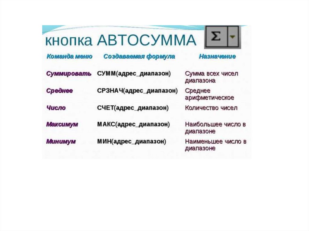Табличный процессор Excel: составление формул, функции. Работа с листом и данными, оформление таблицы (Лекция 3)