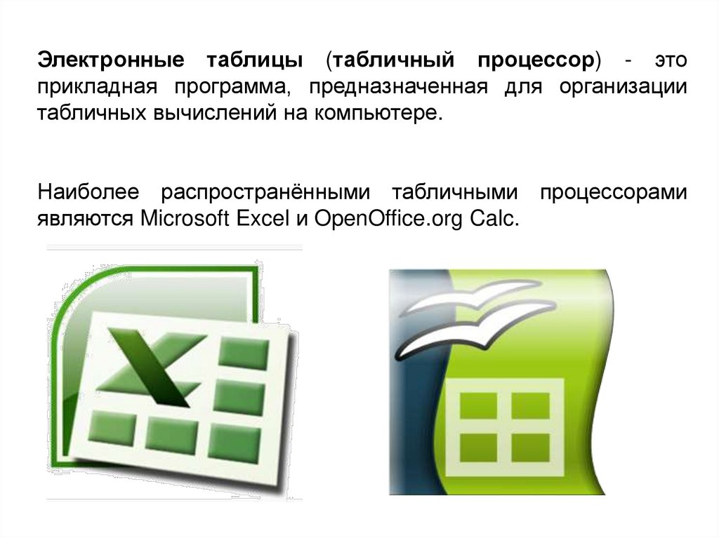 Электронные таблицы (табличный процессор) - этоприкладная программа, предназначенная для организации