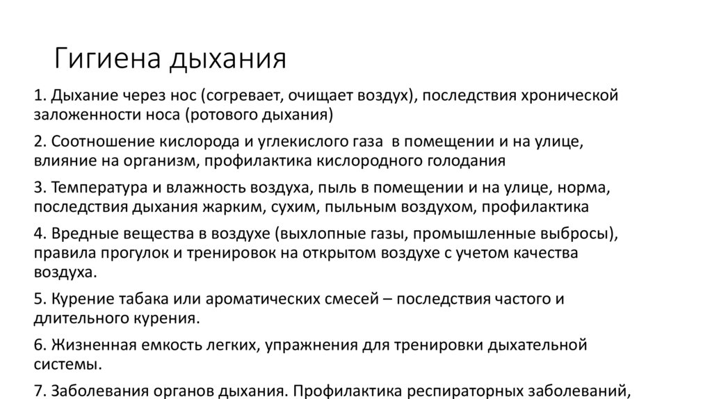 Гигиена дыхания1. Дыхание через нос (согревает, очищает воздух), последствия хронической