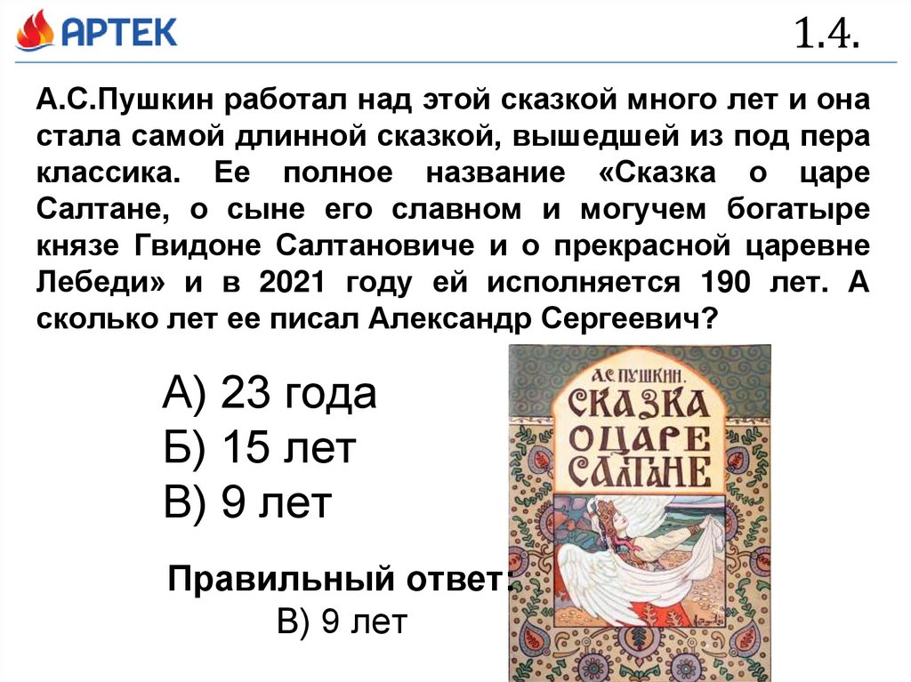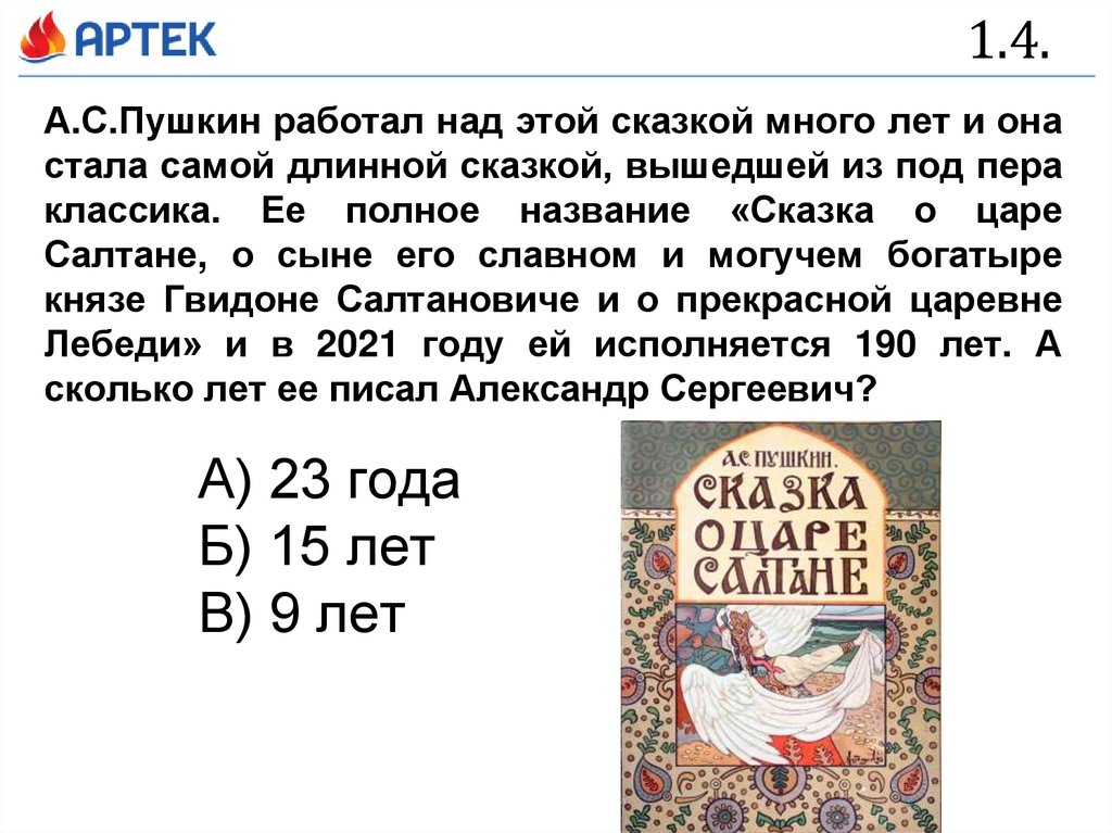 1.4.А.С.Пушкин работал над этой сказкой много лет и она
