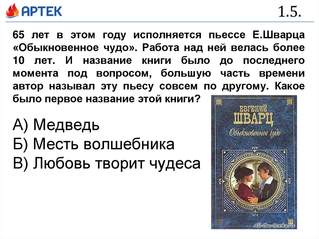 1.5.65 лет в этом году исполняется пьессе Е.Шварца