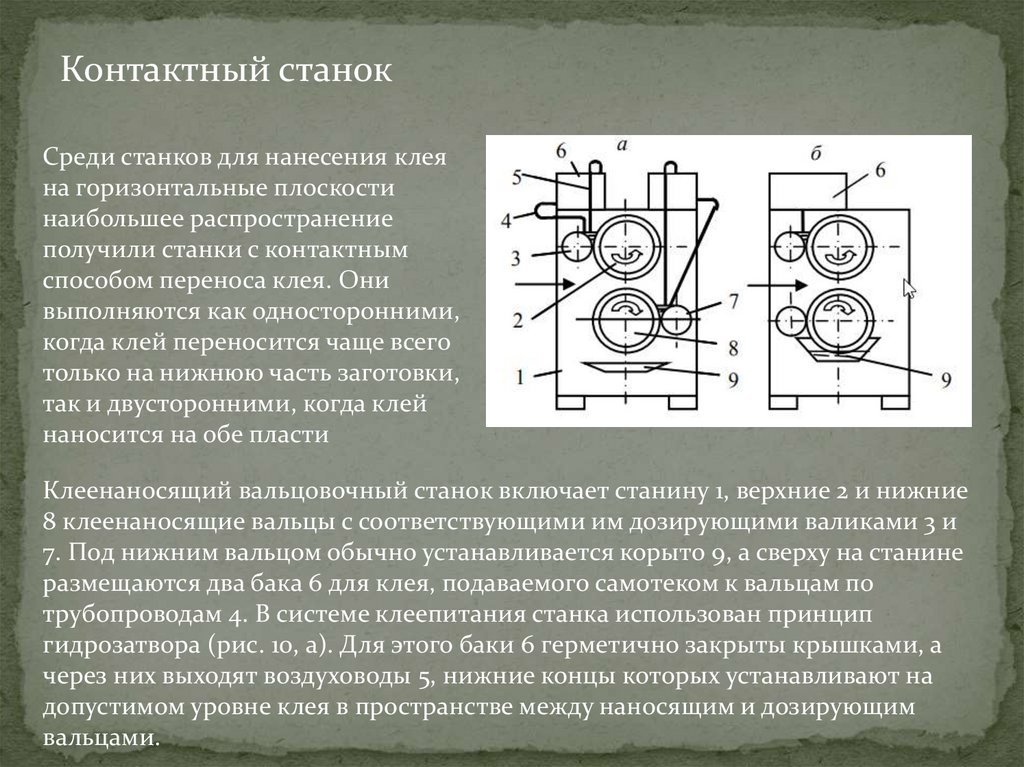 размещаются два бака 6 для клея, подаваемого самотеком к вальцам по