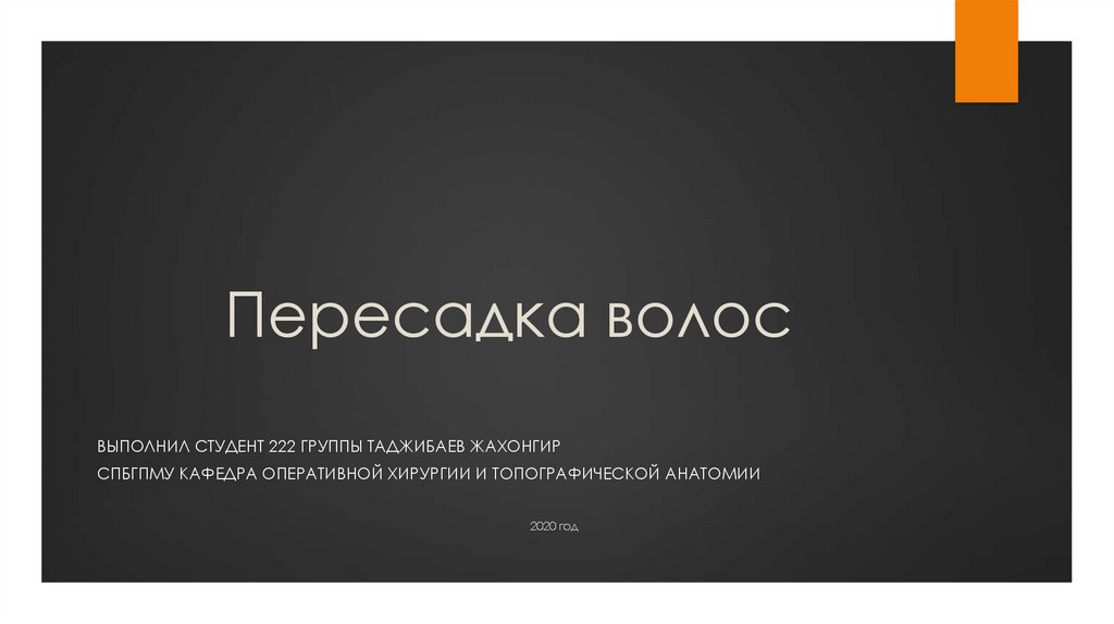 Пересадка волосВЫПОЛНИЛ СТУДЕНТ 222 ГРУППЫ ТАДЖИБАЕВ ЖАХОНГИР