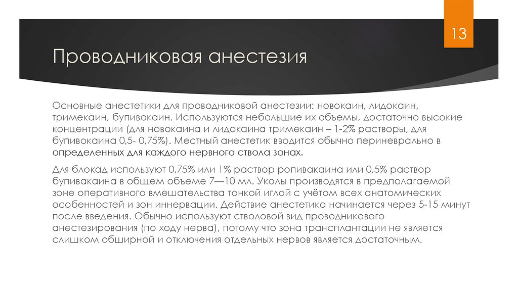 Основные анестетики для проводниковой анестезии: новокаин, лидокаин,
