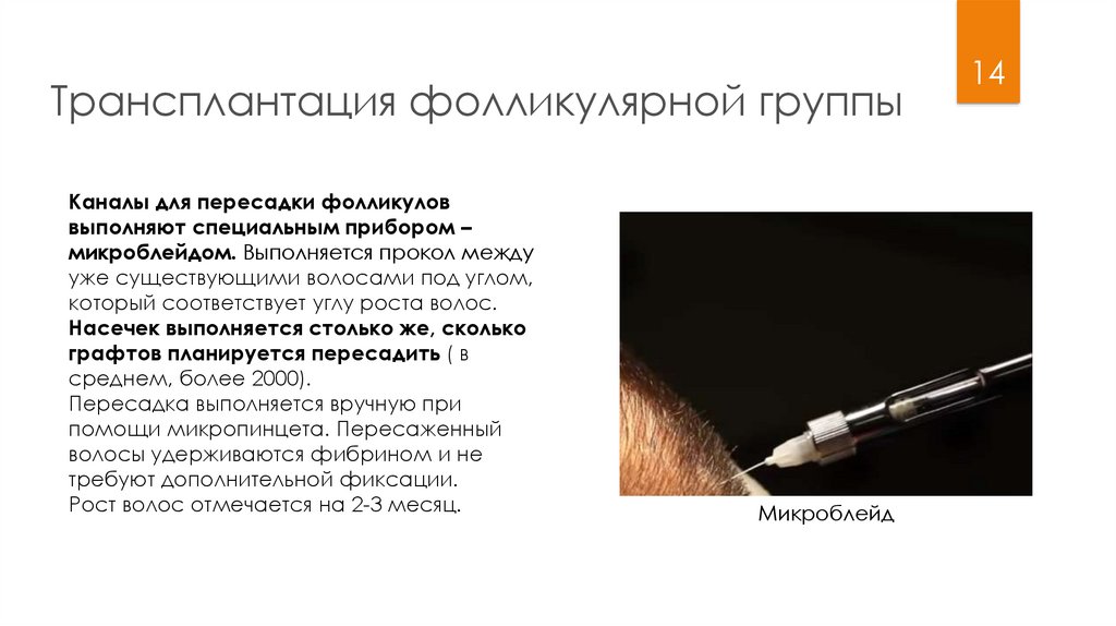 Трансплантация фолликулярной группыКаналы для пересадки фолликулов