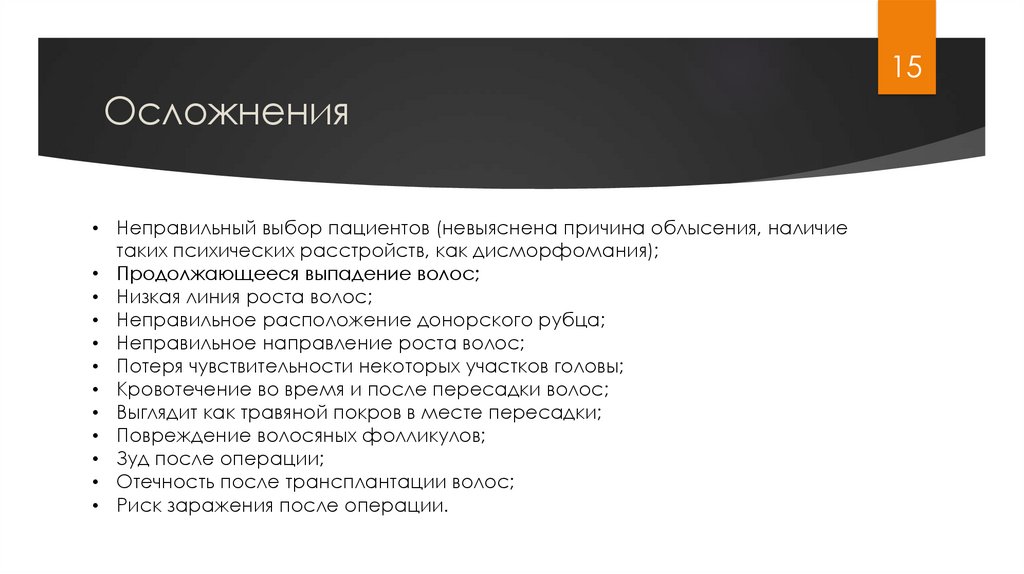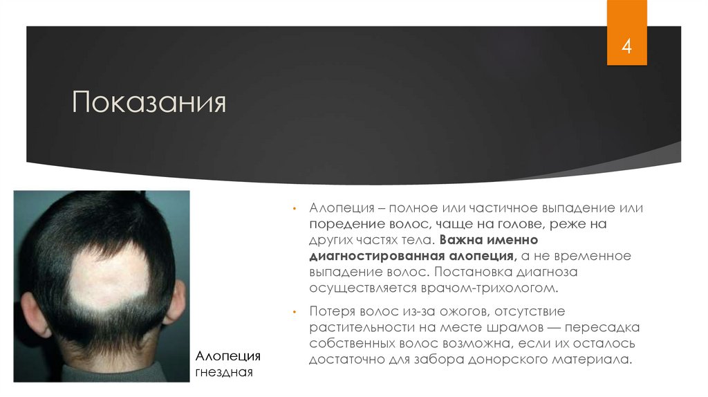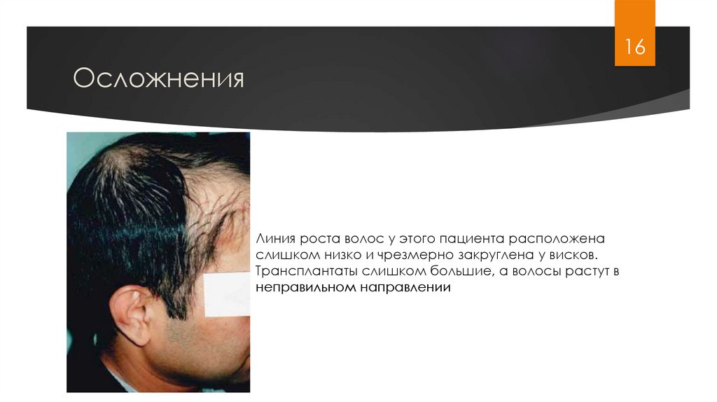 • Неправильный выбор пациентов (невыяснена причина облысения, наличие