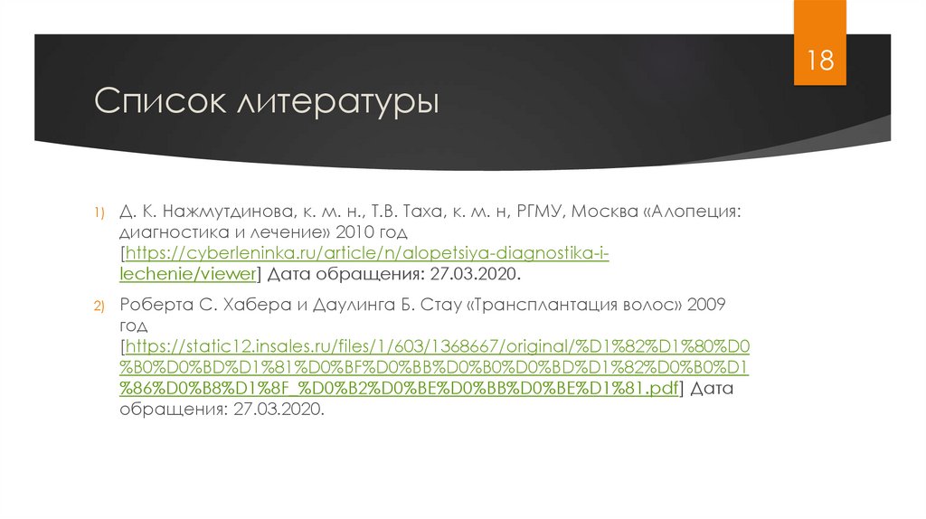 [https://cyberleninka.ru/article/n/alopetsiya-diagnostika-ilechenie/viewer] Дата обращения: 27.03.2020.