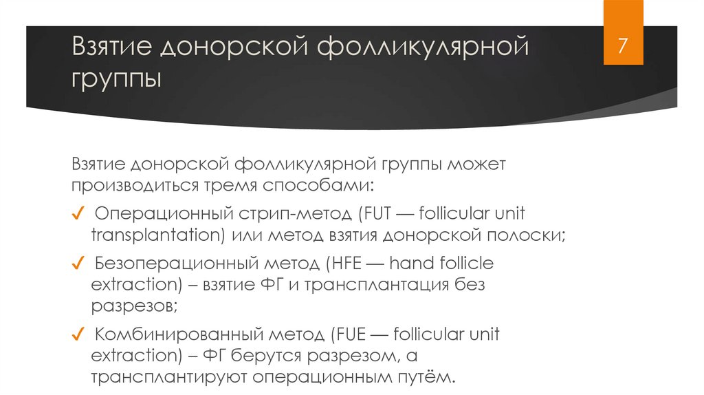 Микрографты – трансплантат, состоящий из одного волоса. Используются при