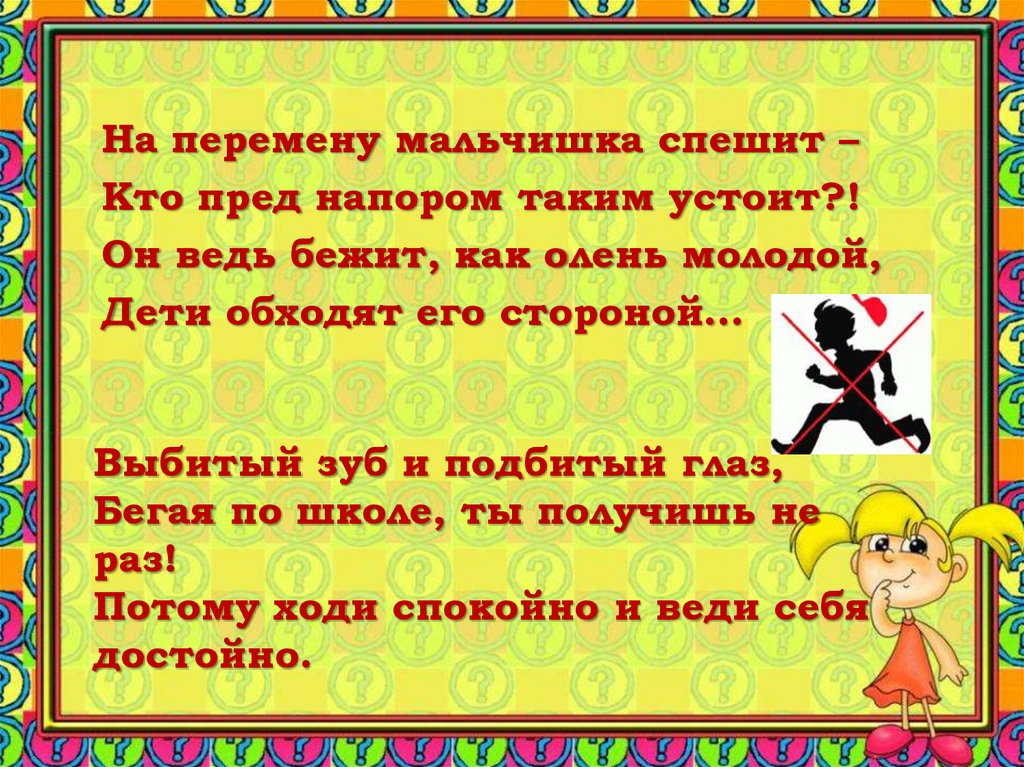 На перемену мальчишка спешит –Кто пред напором таким устоит?!