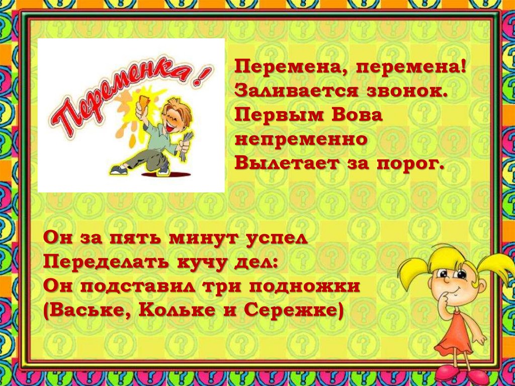 http://900igr.net/kartinki/pedagogika/Deti-v-1-klasse/054-CHto-delajut-deti-naperemenakh.html