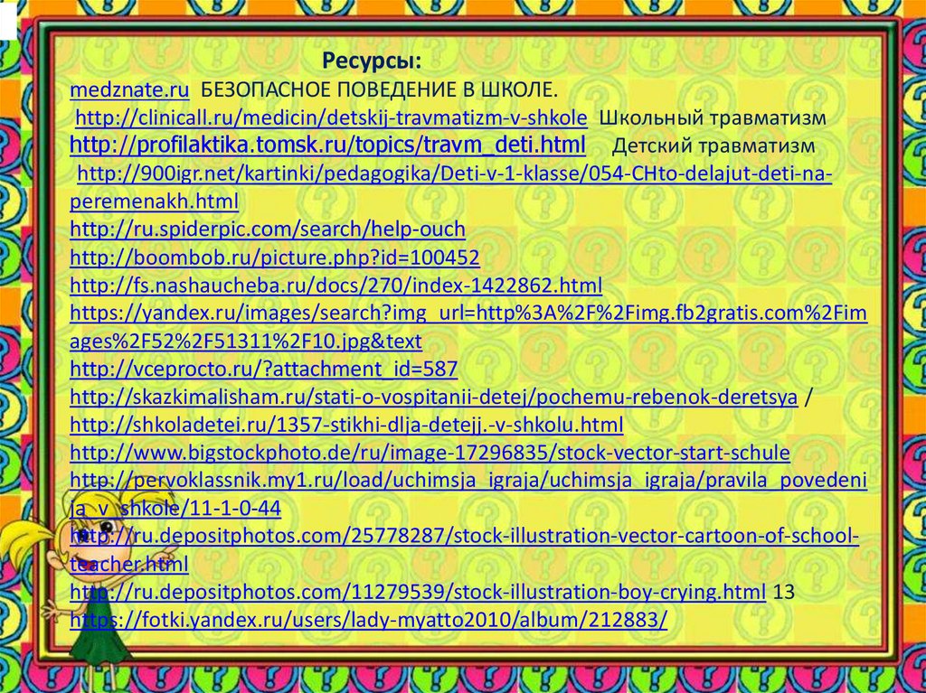 Ресурсы:medznate.ru БЕЗОПАСНОЕ ПОВЕДЕНИЕ В ШКОЛЕ.