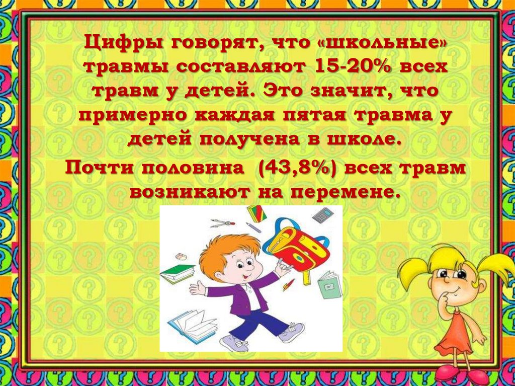 Цифры говорят, что «школьные»травмы составляют 15-20% всех