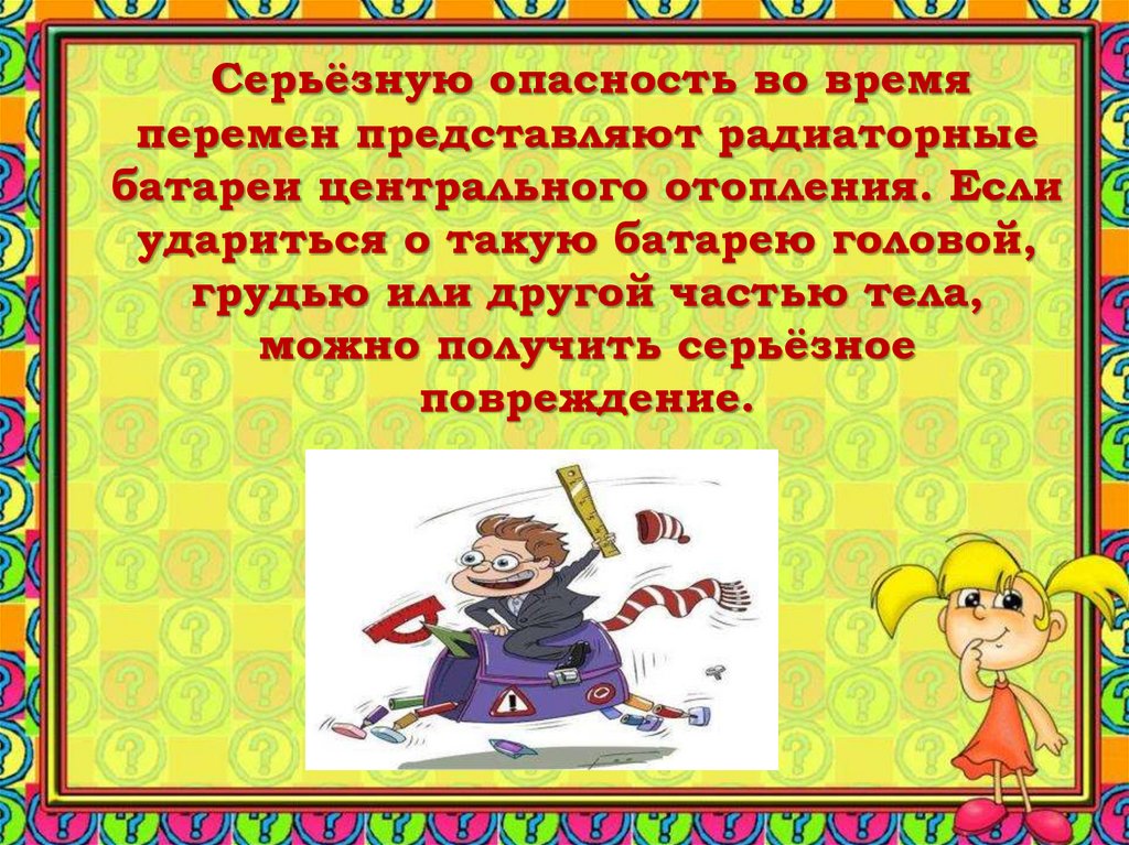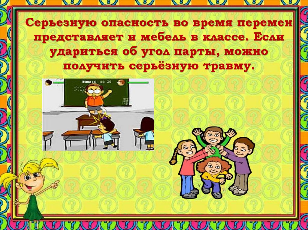 Серьезную опасность во время переменпредставляет и мебель в классе. Если
