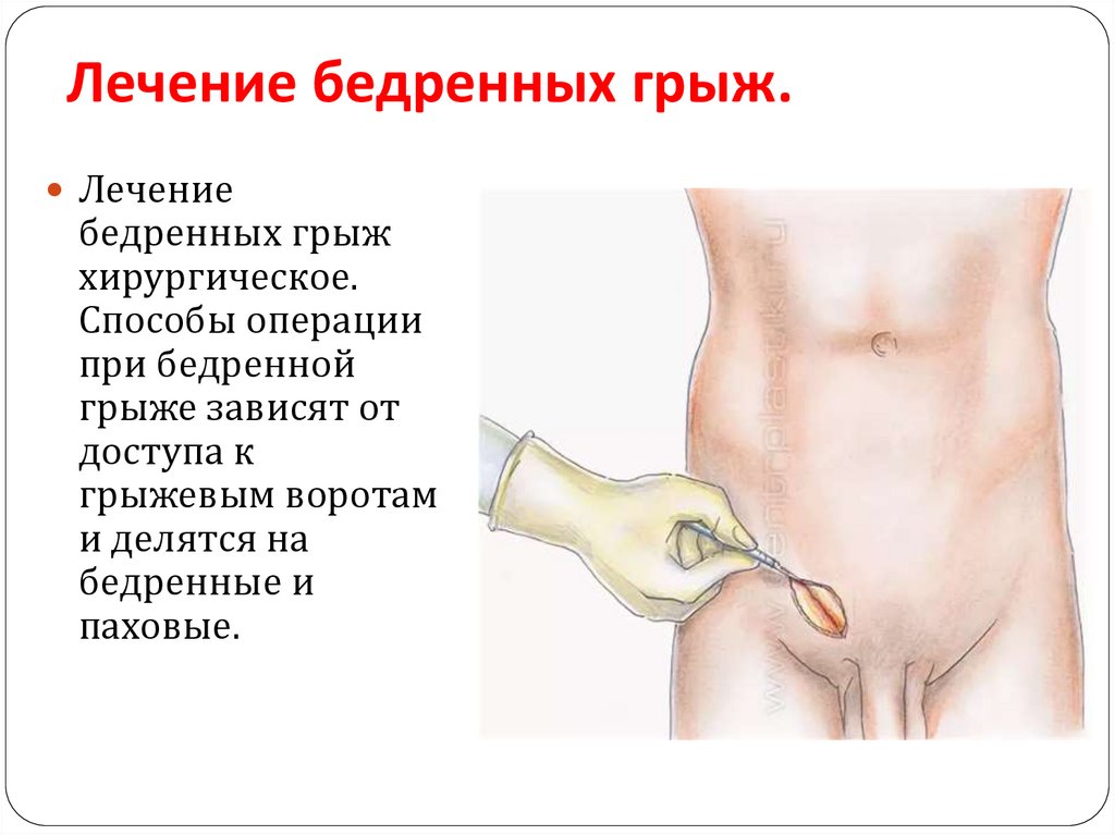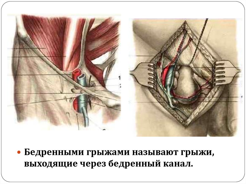 Бедренными грыжами называют грыжи,выходящие через бедренный канал.