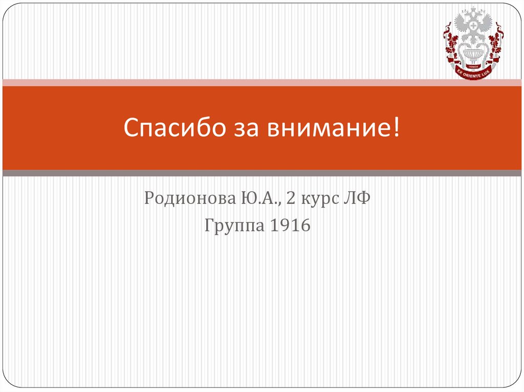 Спасибо за внимание!Родионова Ю.А., 2 курс ЛФ