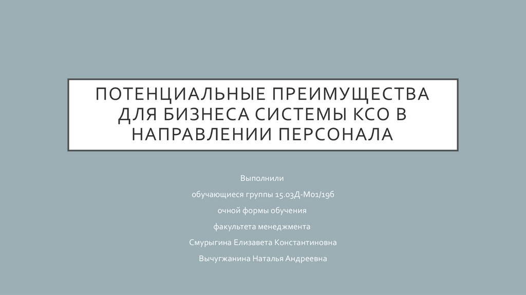 ПОТЕНЦИАЛЬНЫЕ ПРЕИМУЩЕСТВАДЛЯ БИЗНЕСА СИСТЕМЫ КСО В
