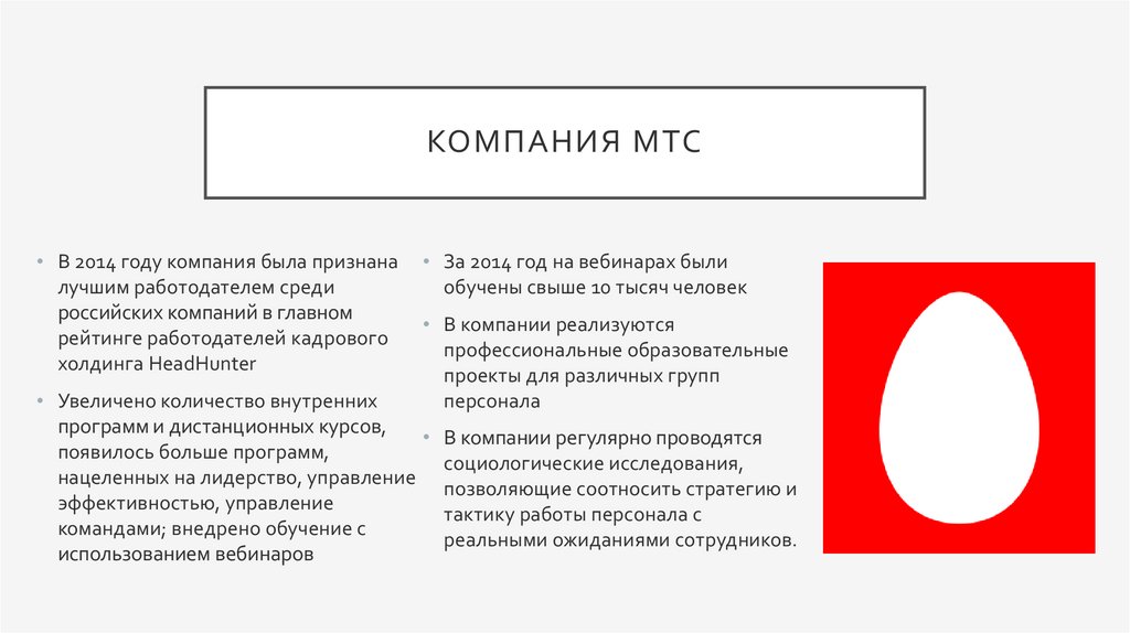 КОМПАНИЯ МТС• В 2014 году компания была признана
