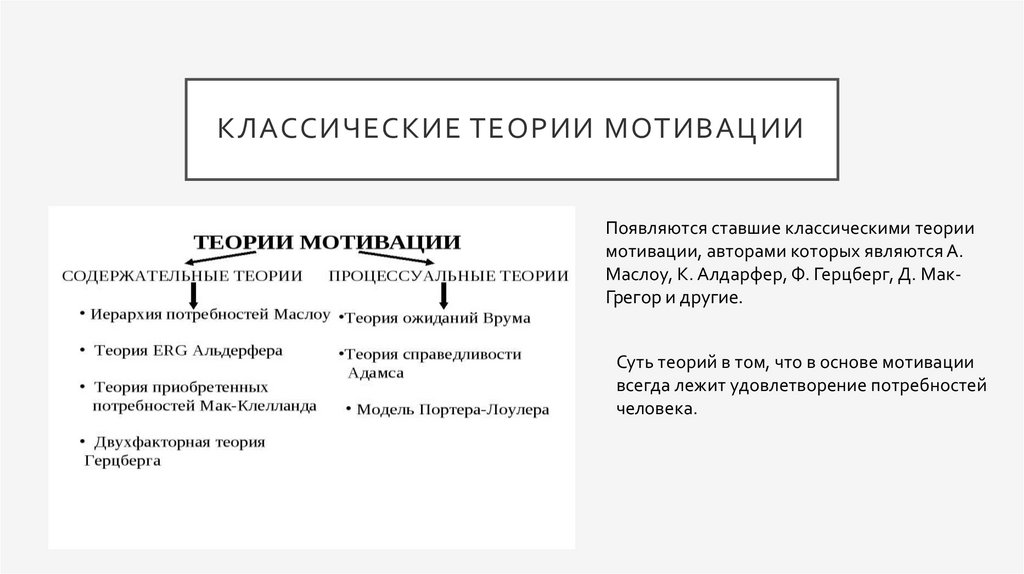 КЛАССИЧЕСКИЕ ТЕОРИИ МОТИВАЦИИПоявляются ставшие классическими теории