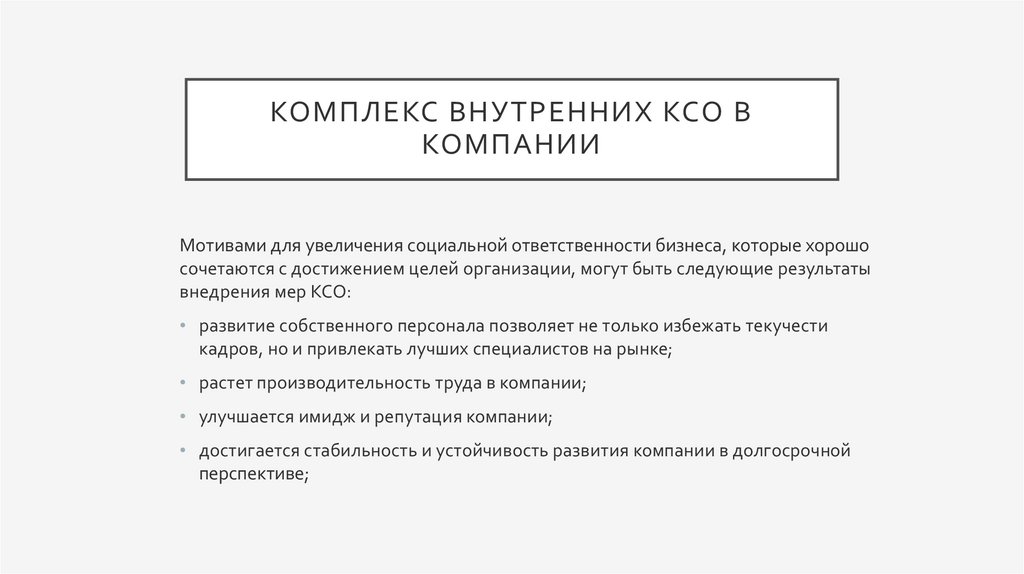 КОМПЛЕКС ВНУТРЕННИХ КСО ВКОМПАНИИ