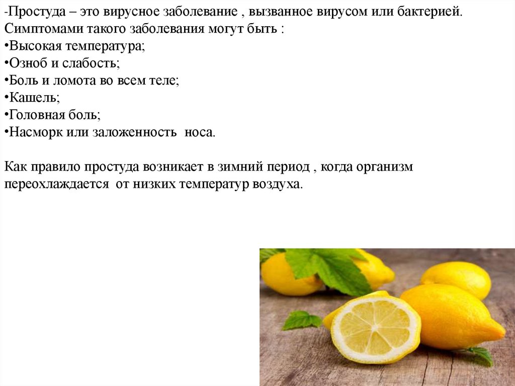 -Простуда – это вирусное заболевание , вызванное вирусом или бактерией.Симптомами такого заболевания могут быть :