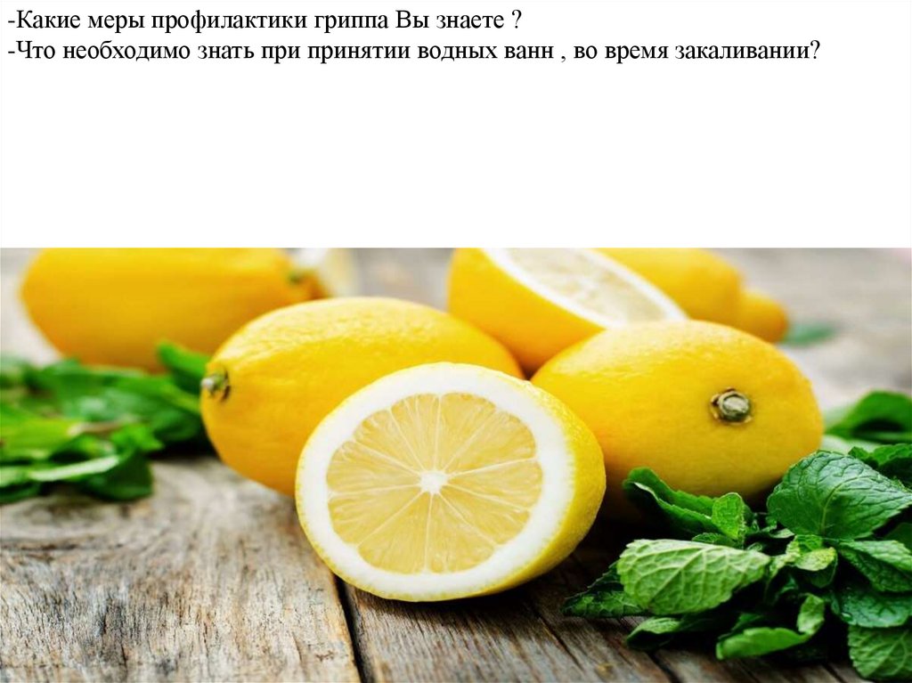 -Какие меры профилактики гриппа Вы знаете ?-Что необходимо знать при принятии водных ванн , во время закаливании?