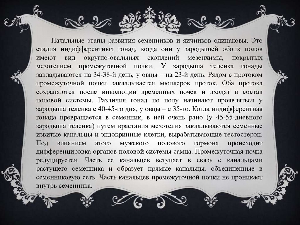 зародыша теленка) путем врастания мезотелия закладываются семенные