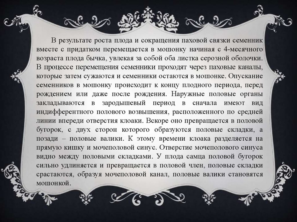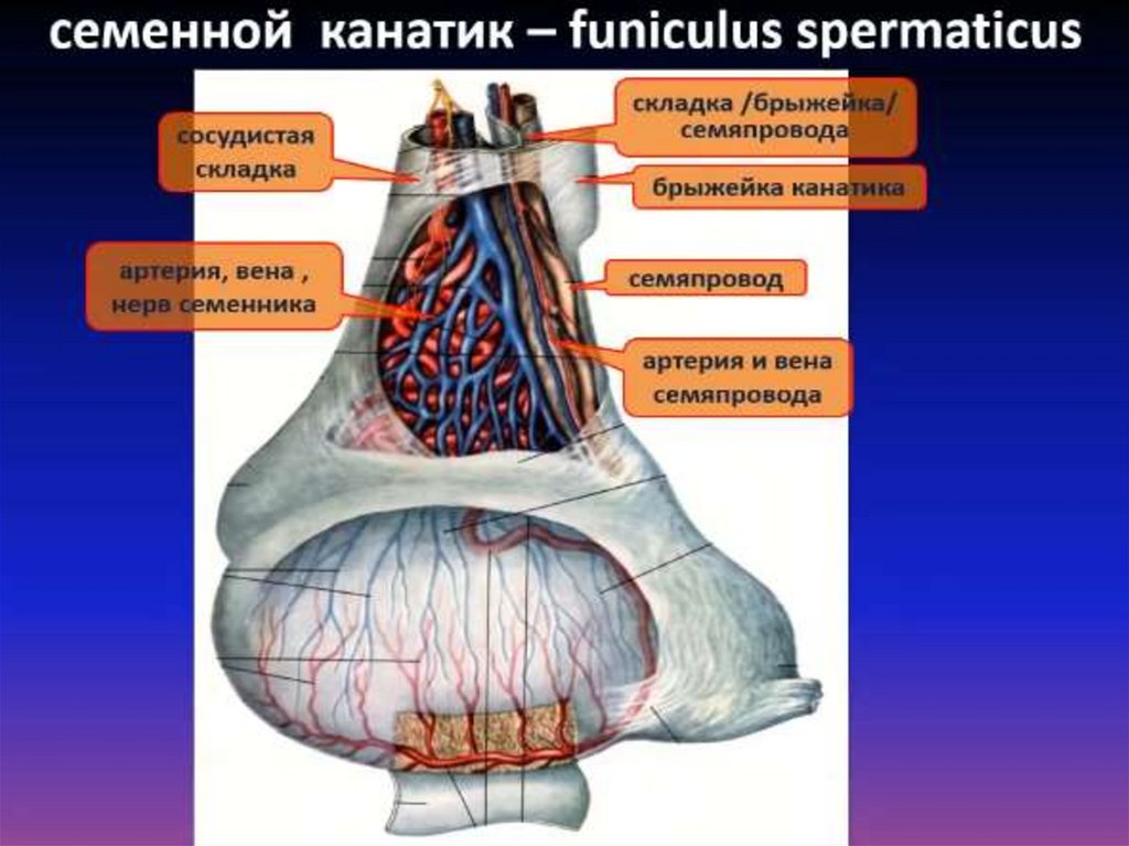 которые затем сужаются и семенники остаются в мошонке. Опускание