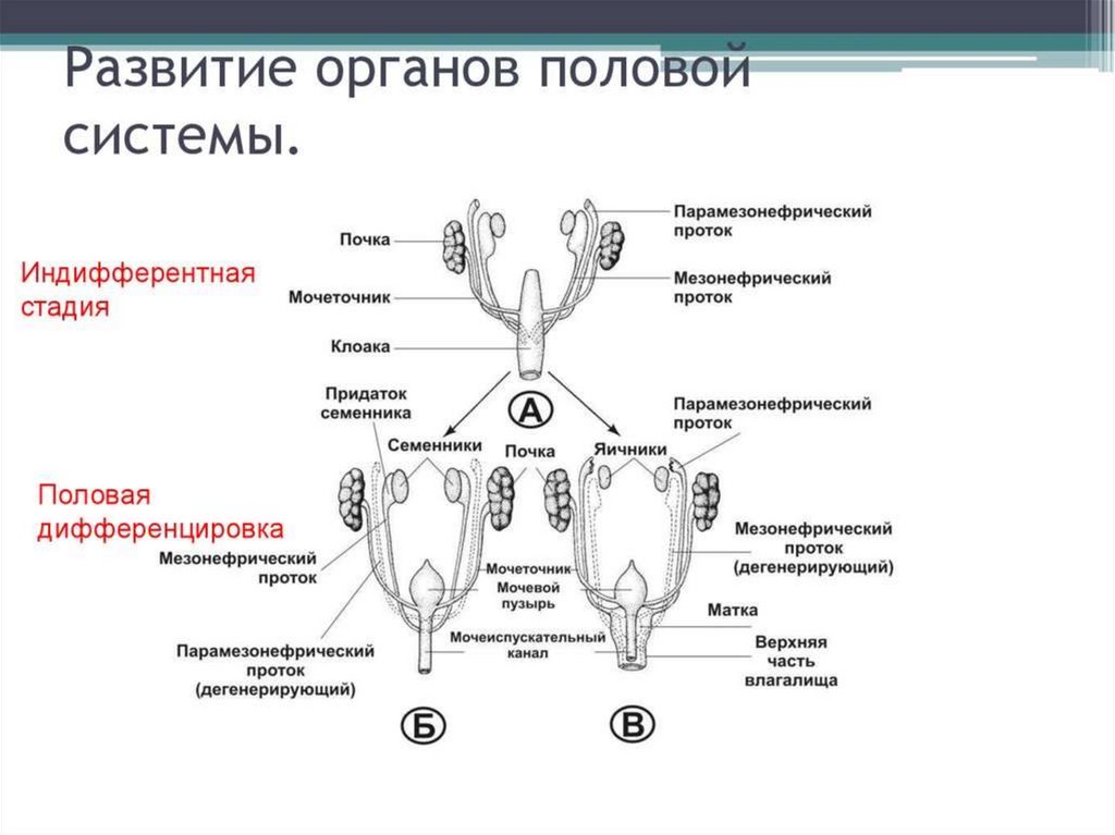 Начальные этапы развития семенников и яичников одинаковы. Этостадия индифферентных гонад, когда они у зародышей обоих полов