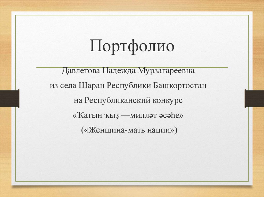ПортфолиоДавлетова Надежда Мурзагареевна