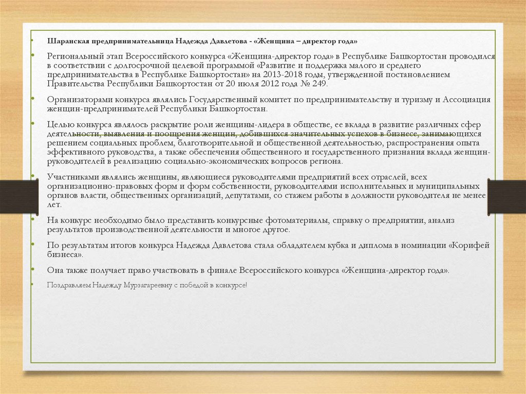 Региональный этап Всероссийского конкурса «Женщина-директор года» в Республике Башкортостан проводился