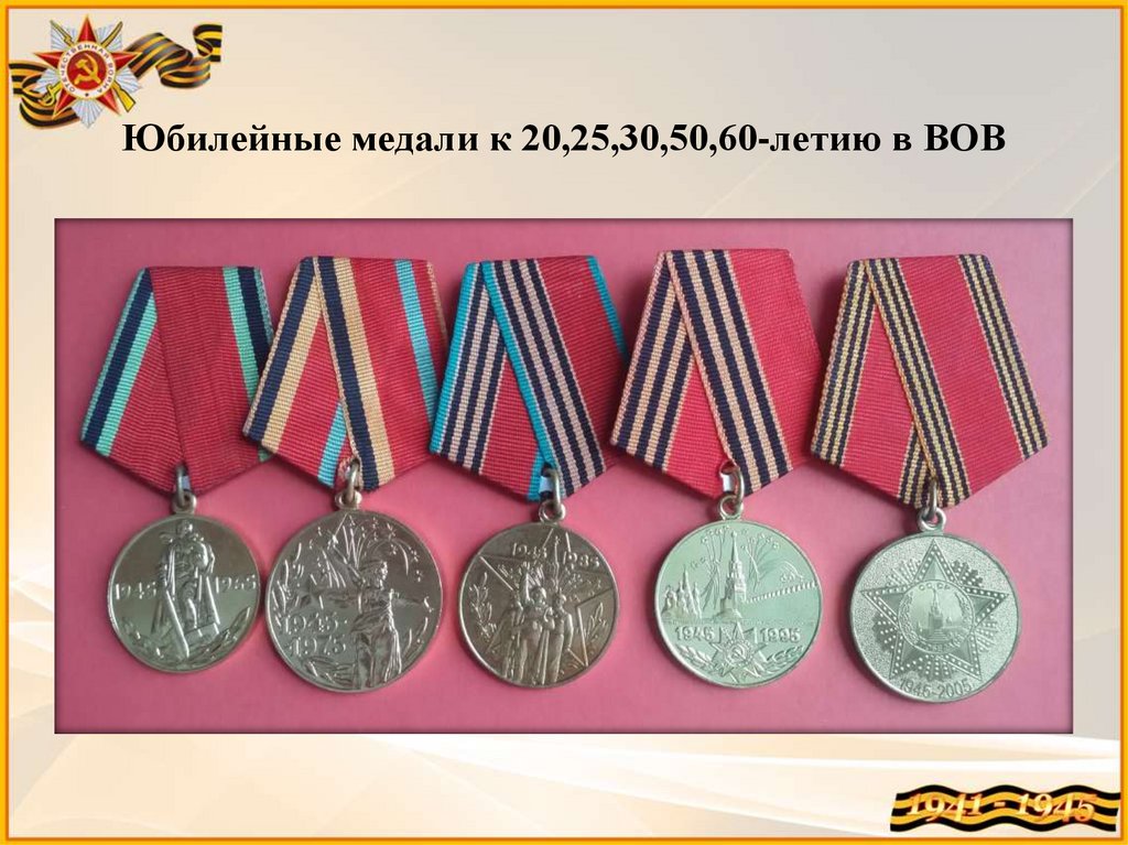 Юбилейные медали к 20,25,30,50,60-летию в ВОВ13.