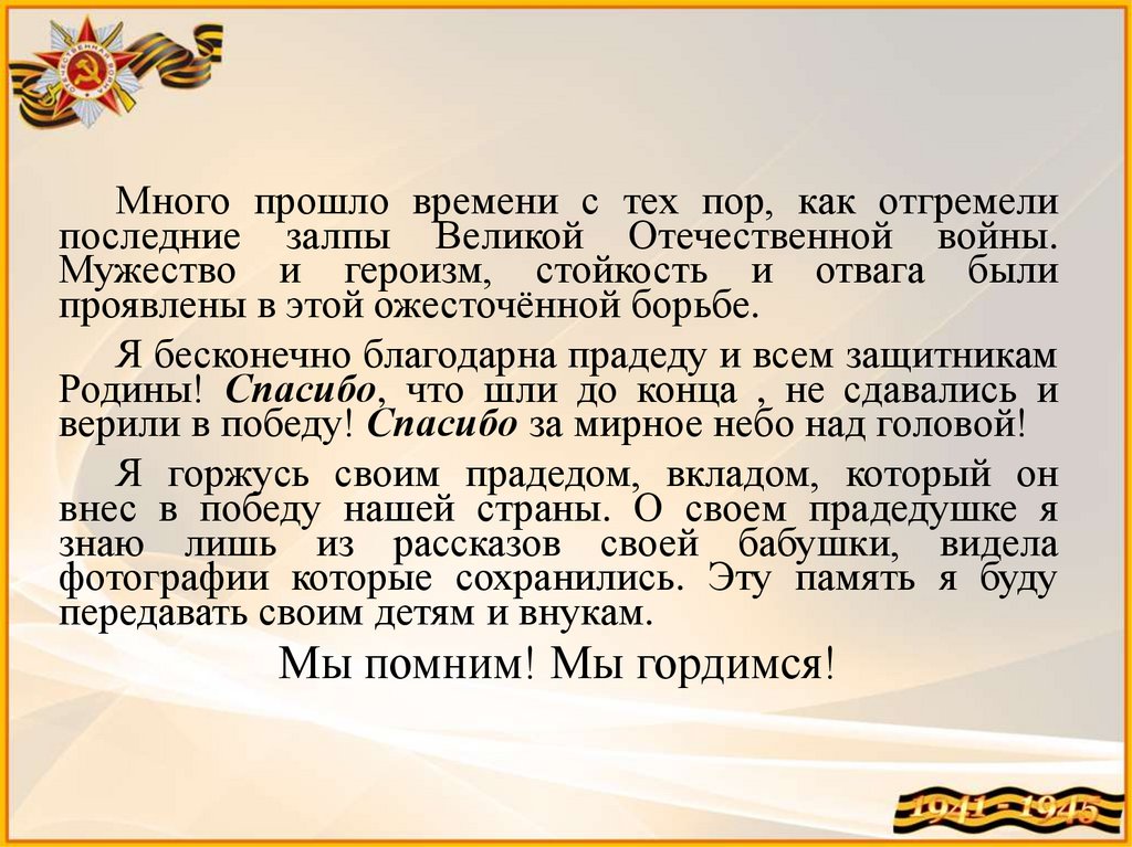 Я бесконечно благодарна прадеду и всем защитникам