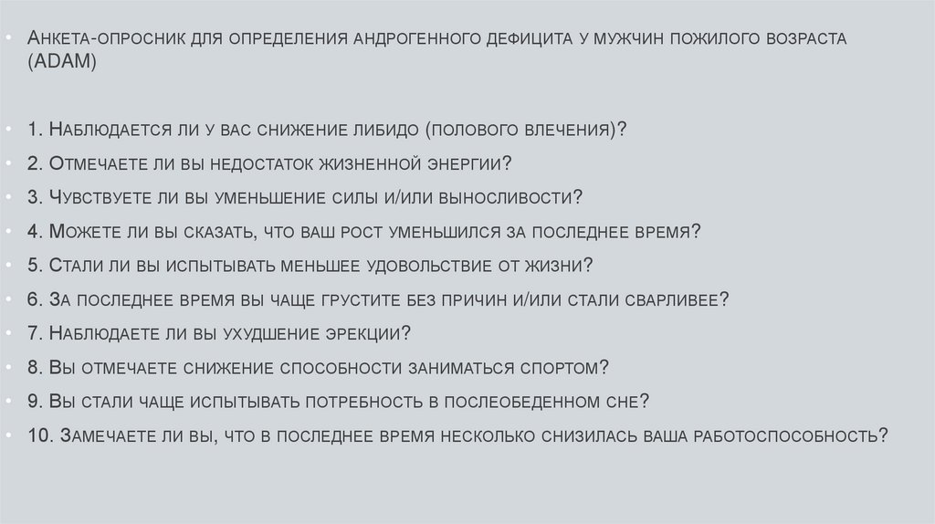 • АНКЕТА-ОПРОСНИК ДЛЯ ОПРЕДЕЛЕНИЯ АНДРОГЕННОГО ДЕФИЦИТА У МУЖЧИН ПОЖИЛОГО ВОЗРАСТА(ADAM)