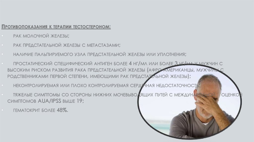 ПРОТИВОПОКАЗАНИЯК ТЕРАПИИ ТЕСТОСТЕРОНОМ: