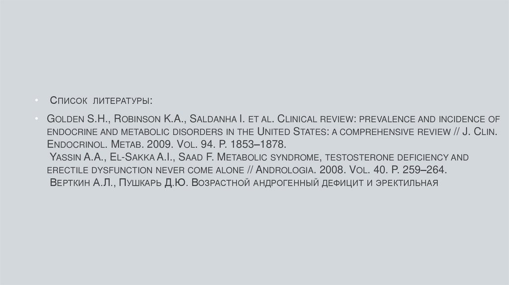 ВЕРТКИН А.Л., ПУШКАРЬ Д.Ю. ВОЗРАСТНОЙ АНДРОГЕННЫЙ ДЕФИЦИТ И ЭРЕКТИЛЬНАЯ