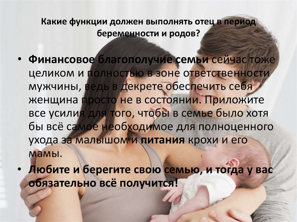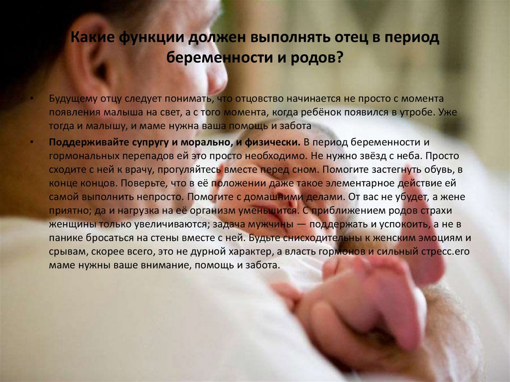 Какие функции должен выполнять отец в периодбеременности и родов?