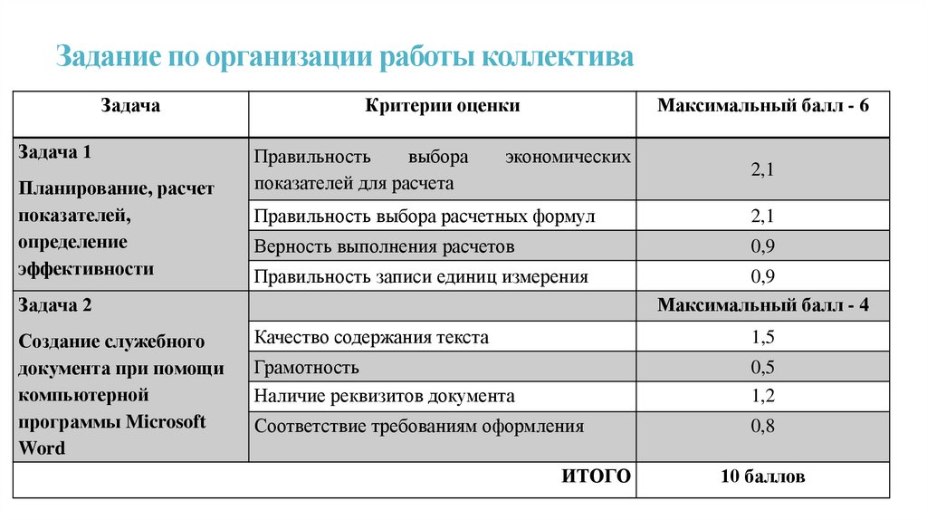 Паспорт практического задания «Задание поорганизации работы коллектива»