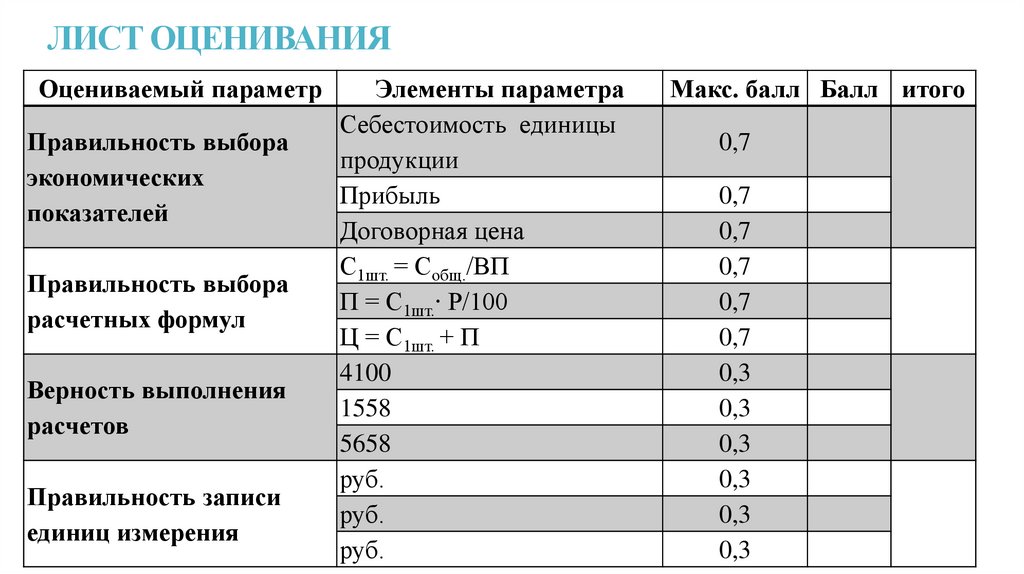 ЛИСТ ОЦЕНИВАНИЯОцениваемый параметр