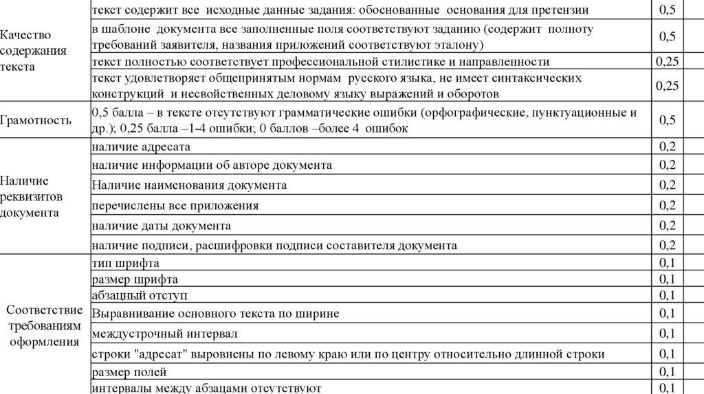 др.); 0,25 балла –1-4 ошибки; 0 баллов –более 4 ошибок
