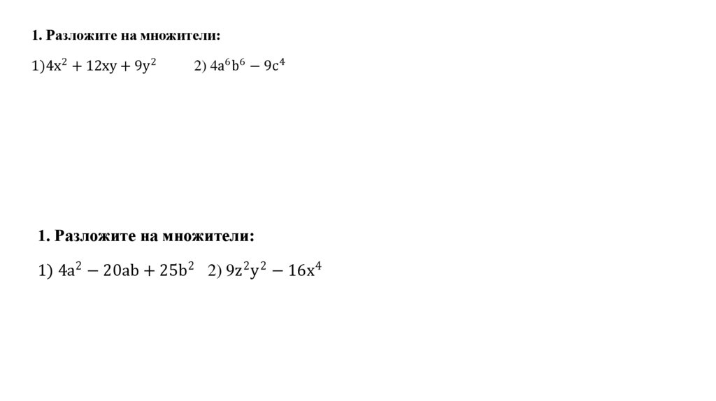 1. Разложите на множители:1)4x 2 + 12xy + 9y 2