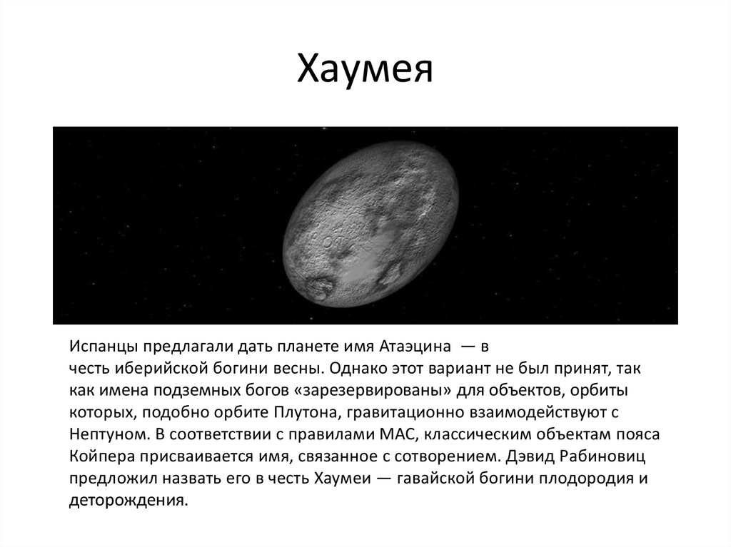 ХаумеяИспанцы предлагали дать планете имя Атаэцина — в