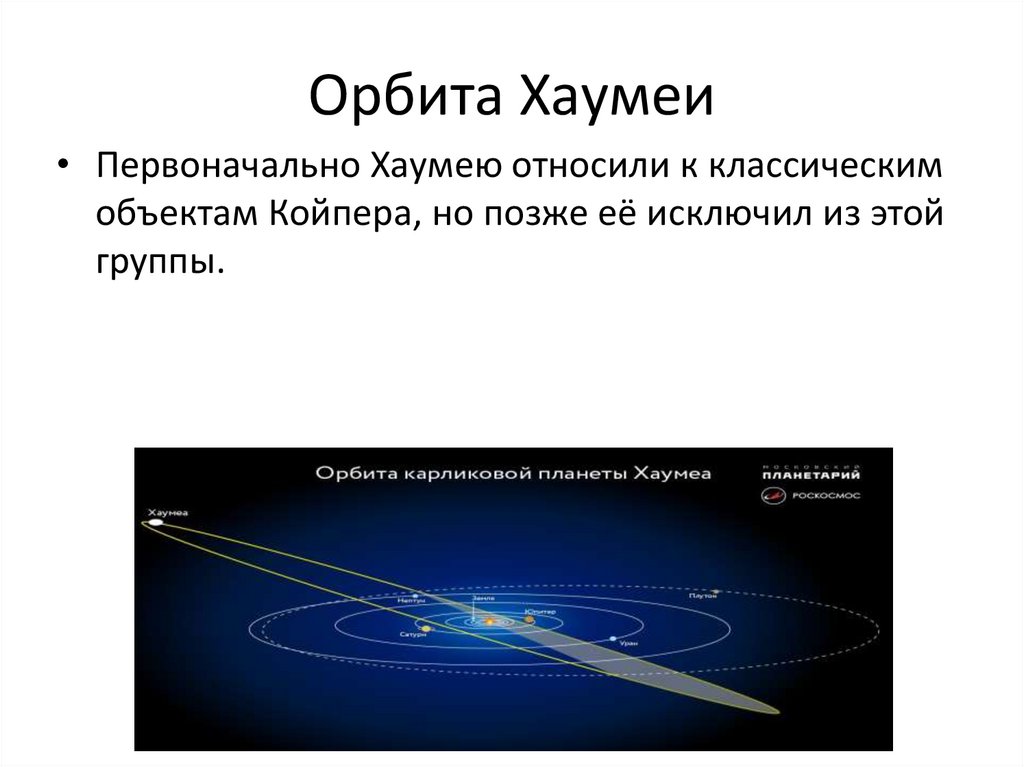 Орбита Хаумеи• Первоначально Хаумею относили к классическим