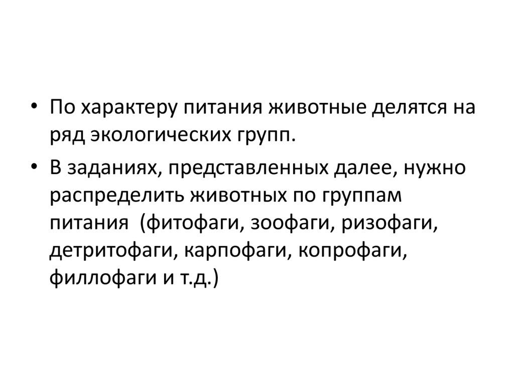 Фаги. Ряд экологических групп животных связанных пищевыми цепями