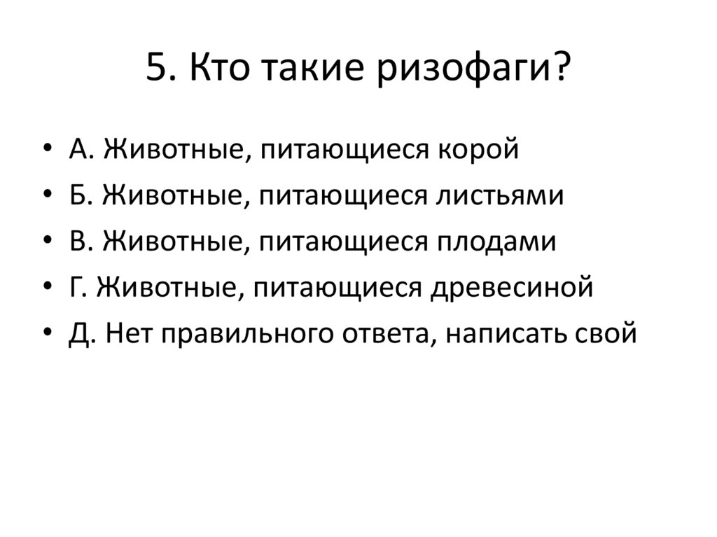 5. Кто такие ризофаги?А. Животные, питающиеся корой