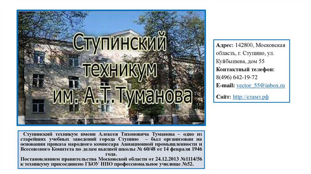 Ступинский техникум имени Алексея Тихоновича Туманова – одно из
