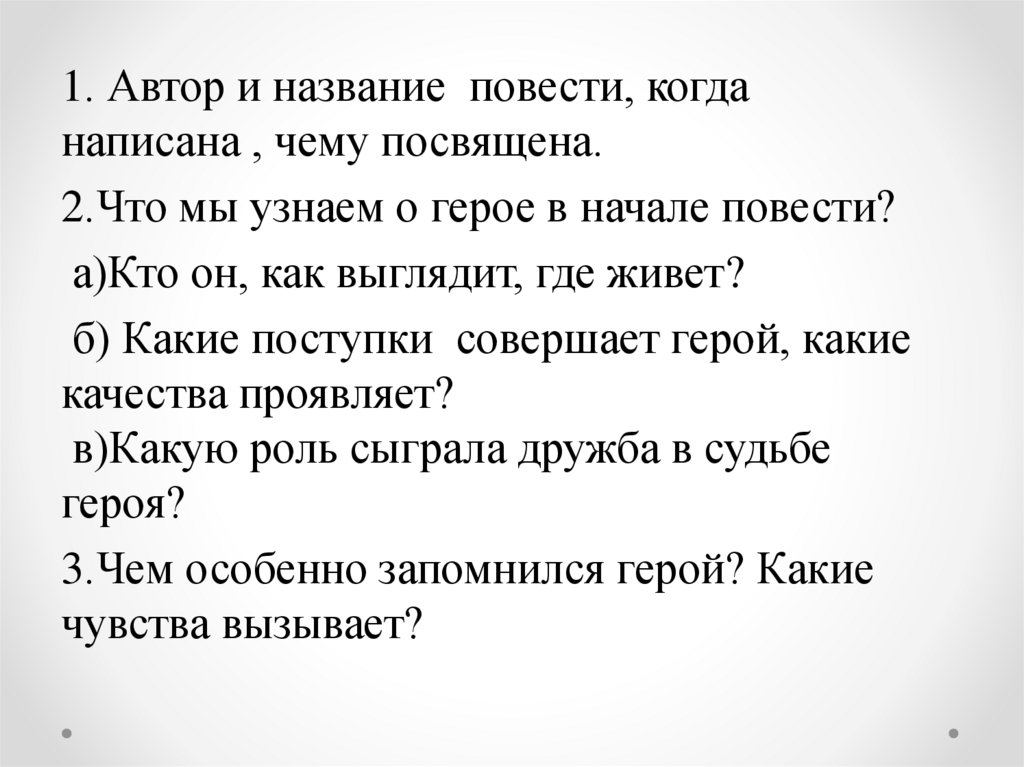 1. Автор и название повести, когданаписана , чему посвящена.