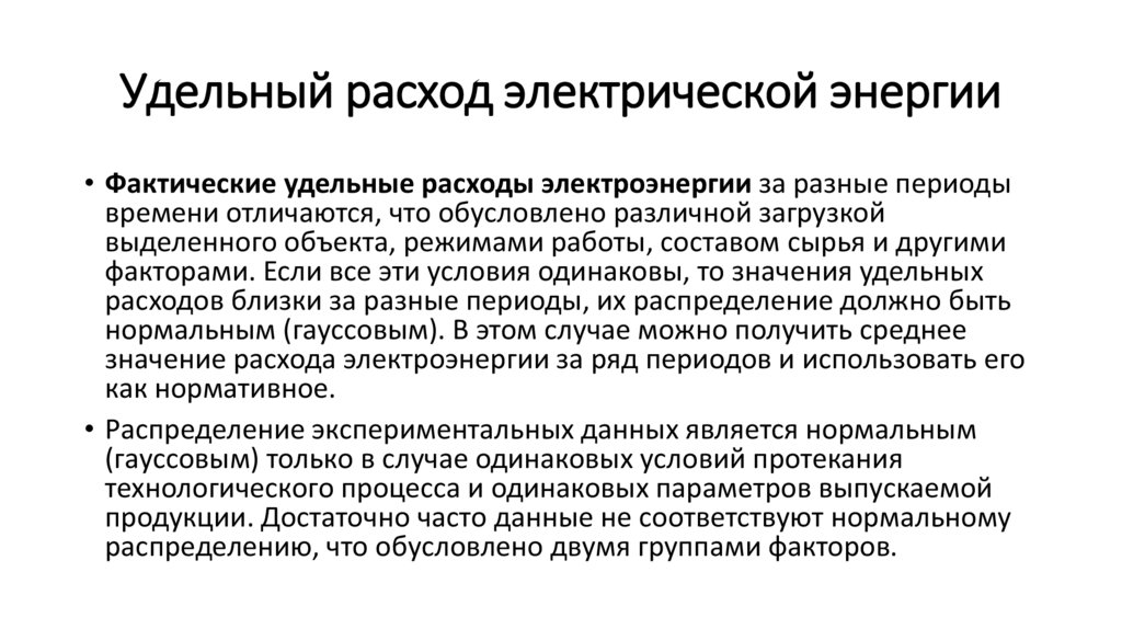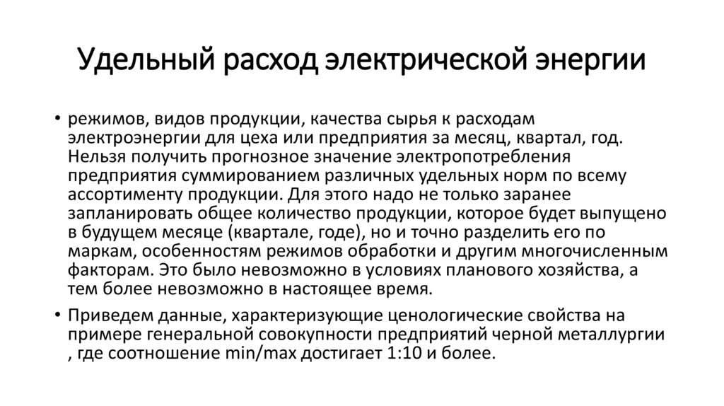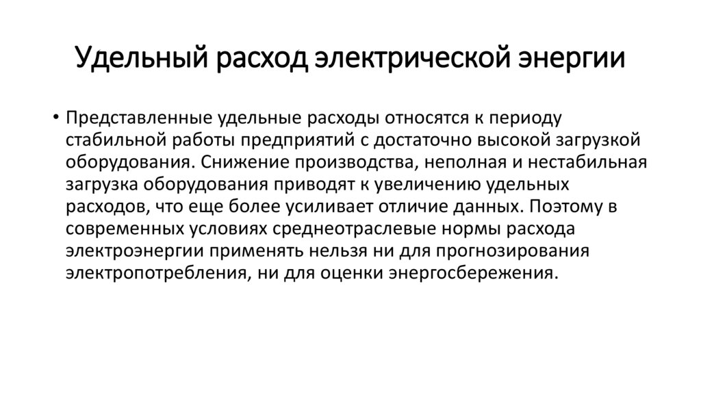 • Предпочтительнее рассчитывать удельные расходы электроэнергии в