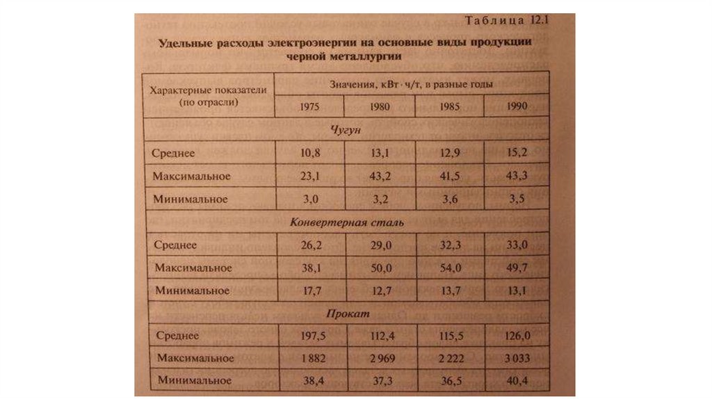 • Различают удельные расходы электроэнергии на единицу продукции