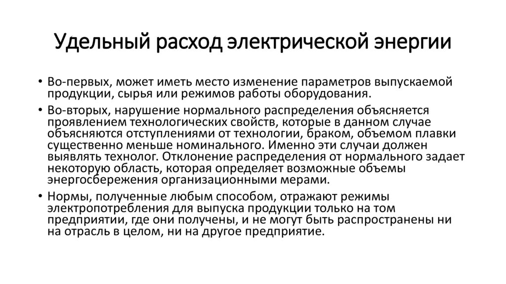 Удельный расход электрической энергии• Во-первых, может иметь место изменение параметров выпускаемой