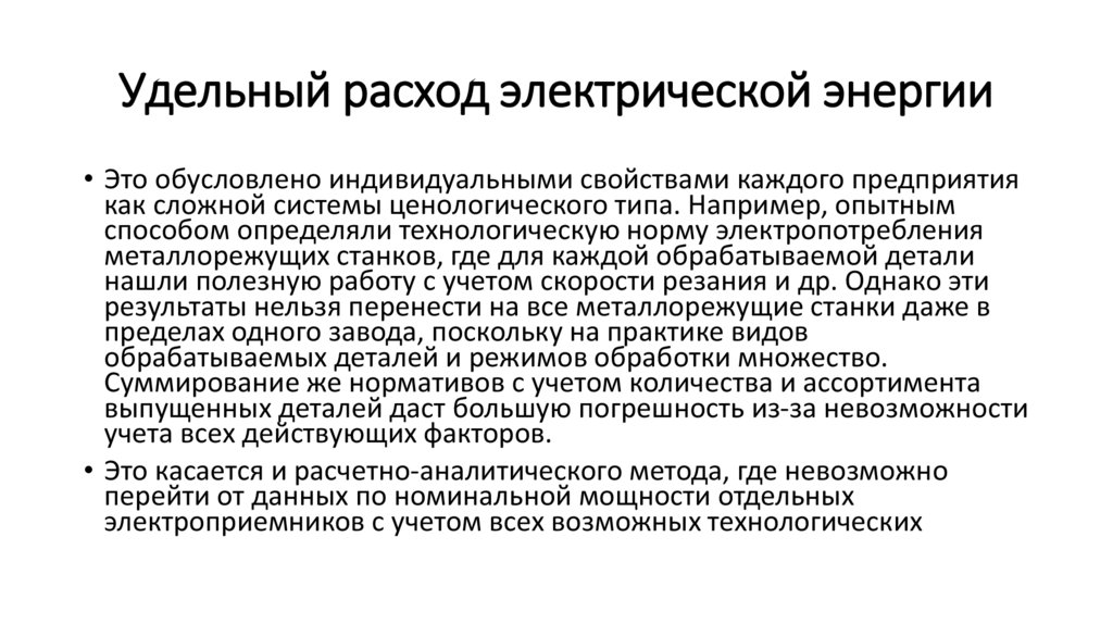 Удельный расход электрической энергии• Это обусловлено индивидуальными свойствами каждого предприятия